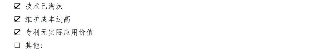本單位決定自即日起放棄對(duì)上述專利的維護(hù)(包括但不限于停止繳納年費(fèi)),具體原因如下: